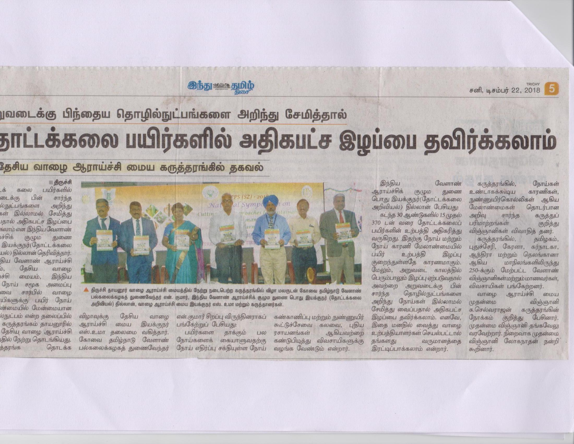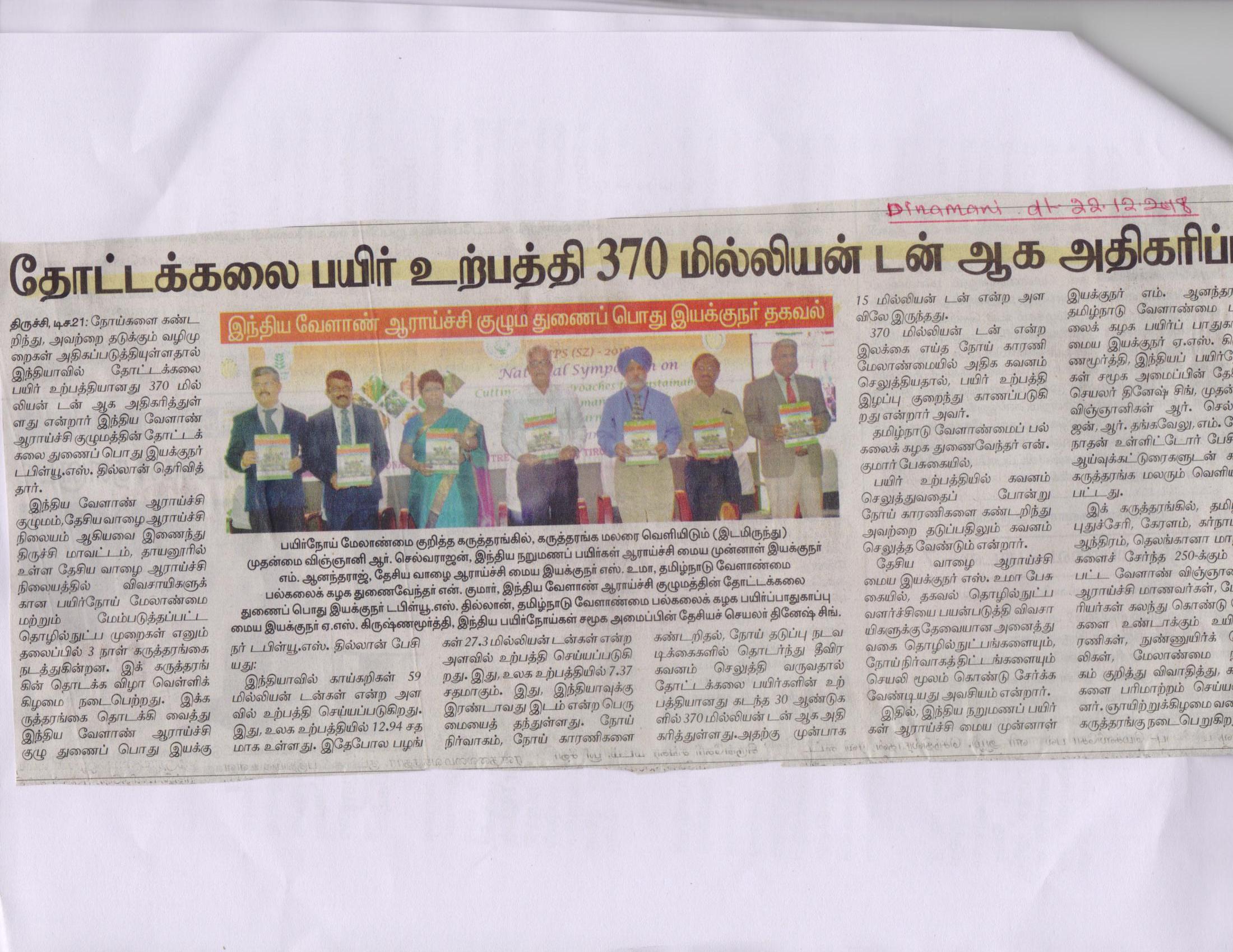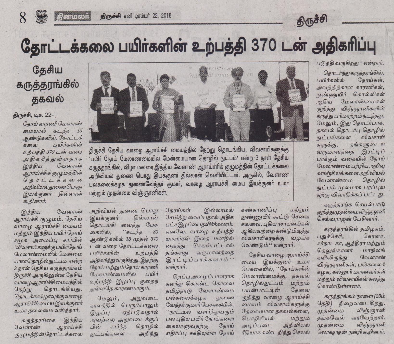 NEWS - National Symposium on Cutting edge approaches for sustainable plant disease management and ensuring farmer’s profit held during 21-21, Dec., 2018