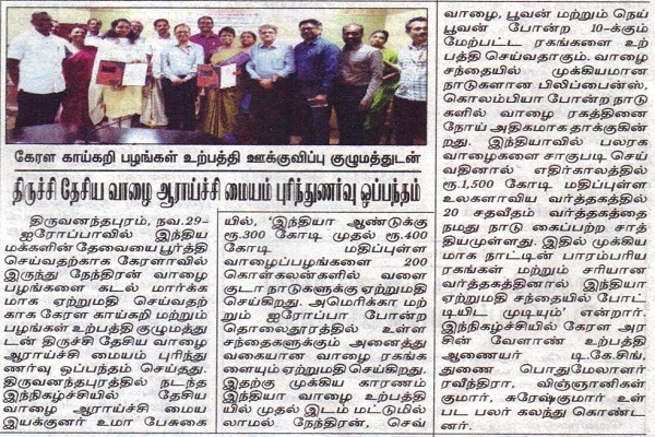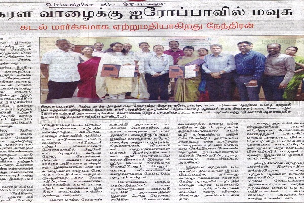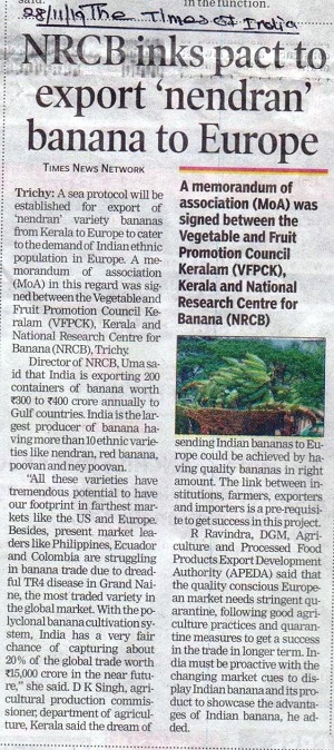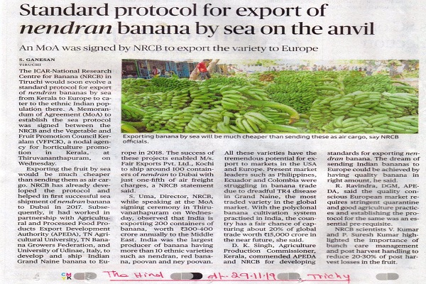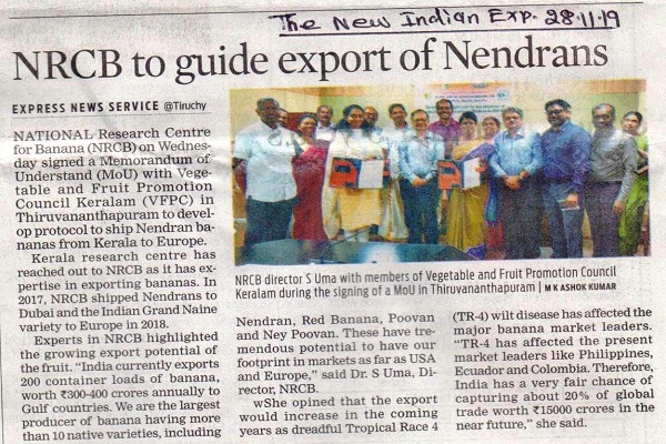 NEWS - MoA with VFPCK, Kerala for Exporting Nendran Banana to Europe