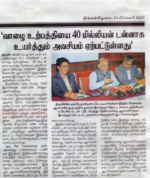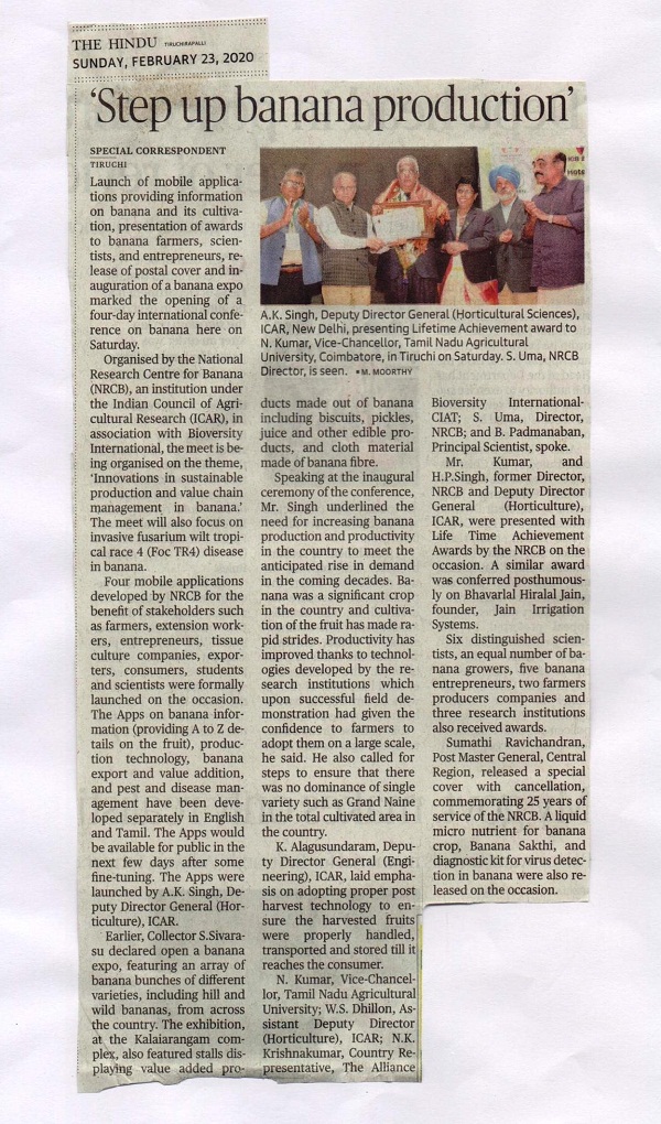 NEWS - News on International Conference on Banana 2020 held during 22-25, February 2020