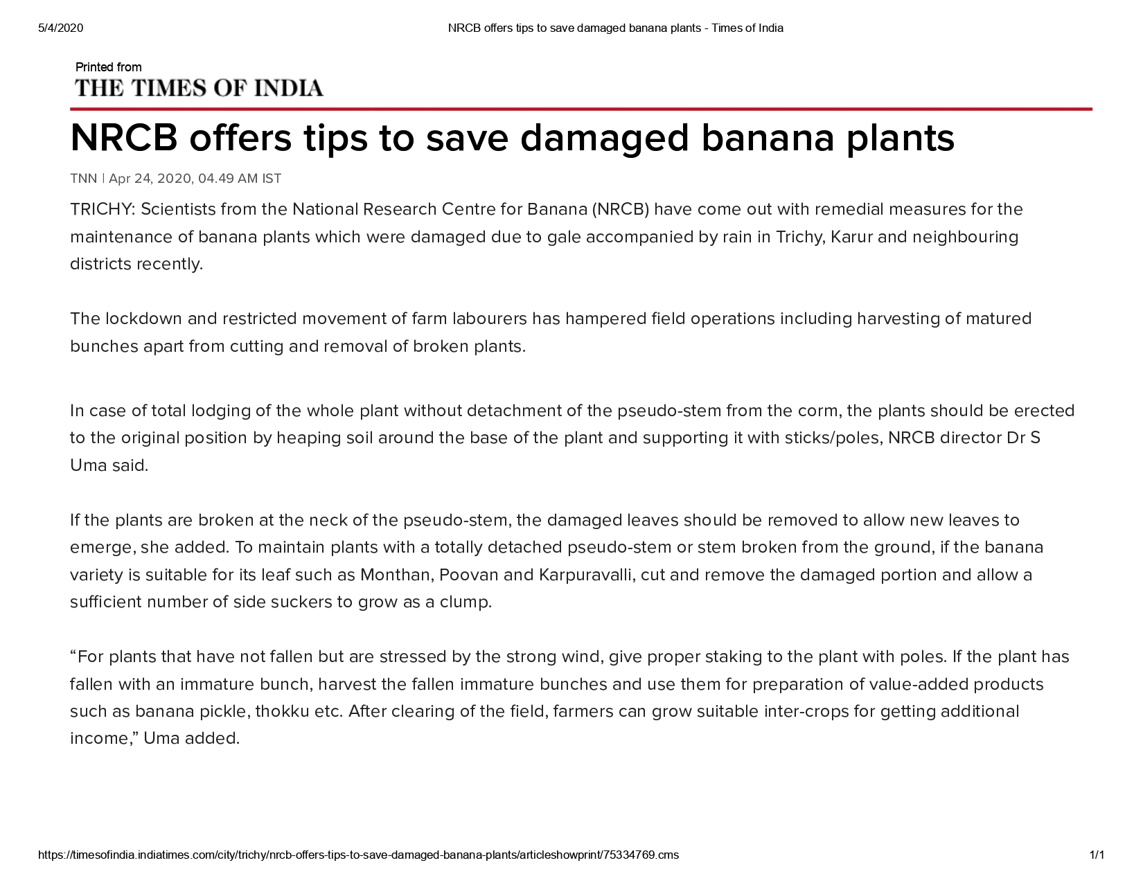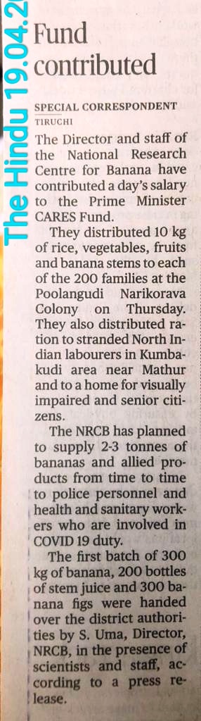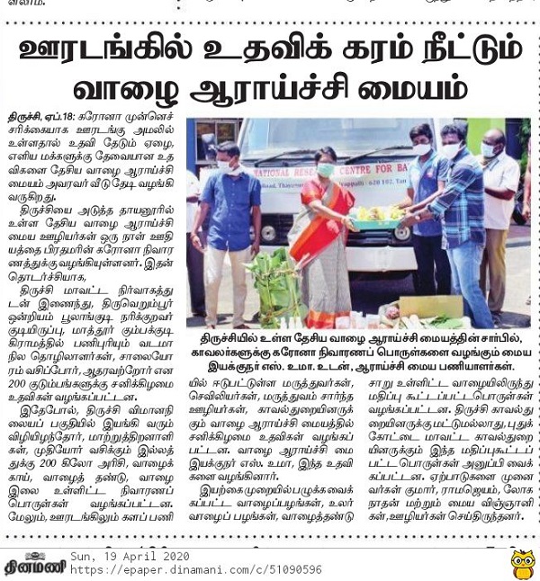 NEWS - Activities of ICAR- NRC banana during COVID-19 lockdown period